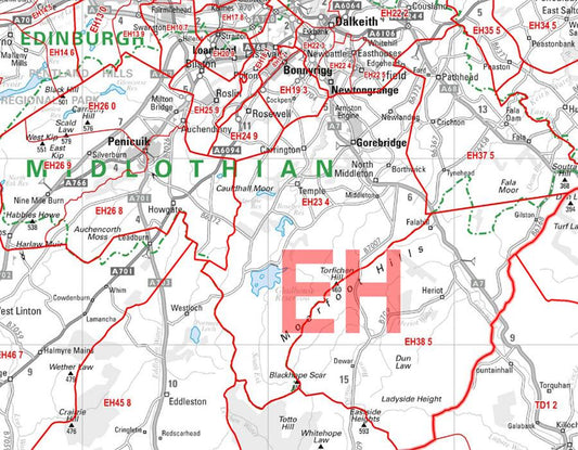 Edinburgh and Borders Postcode Wall Map - Sector Map 26