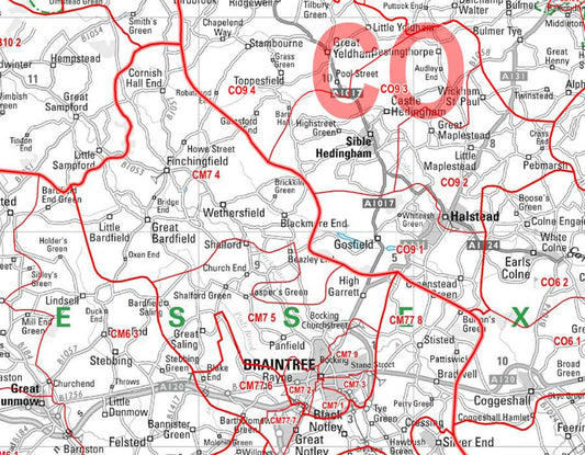 East Anglia (South) Postcode Wall Map - Sector Map 9