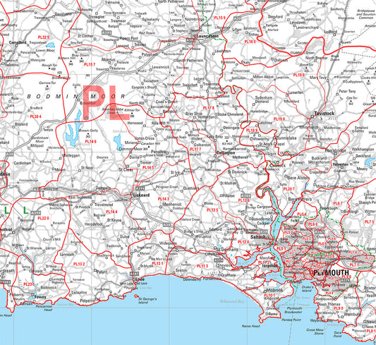 Cornwall and Scilly Isles Postcode Wall Map - Sector Map 1