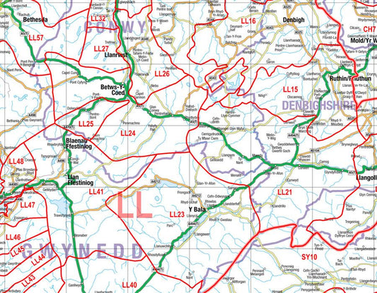 South and Central Scotland (Glasgow, Edinburgh and Newcastle-upon-Tyne) Postcode Wall Map - District Map 5