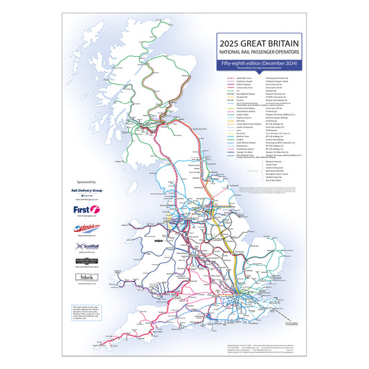 UK Rail Operators Map 61st Edition - Laminated Railway Wall Map