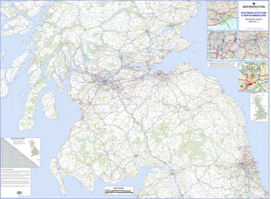 Southern Scotland and Northumberland Regional Road Map - Wall Map 3