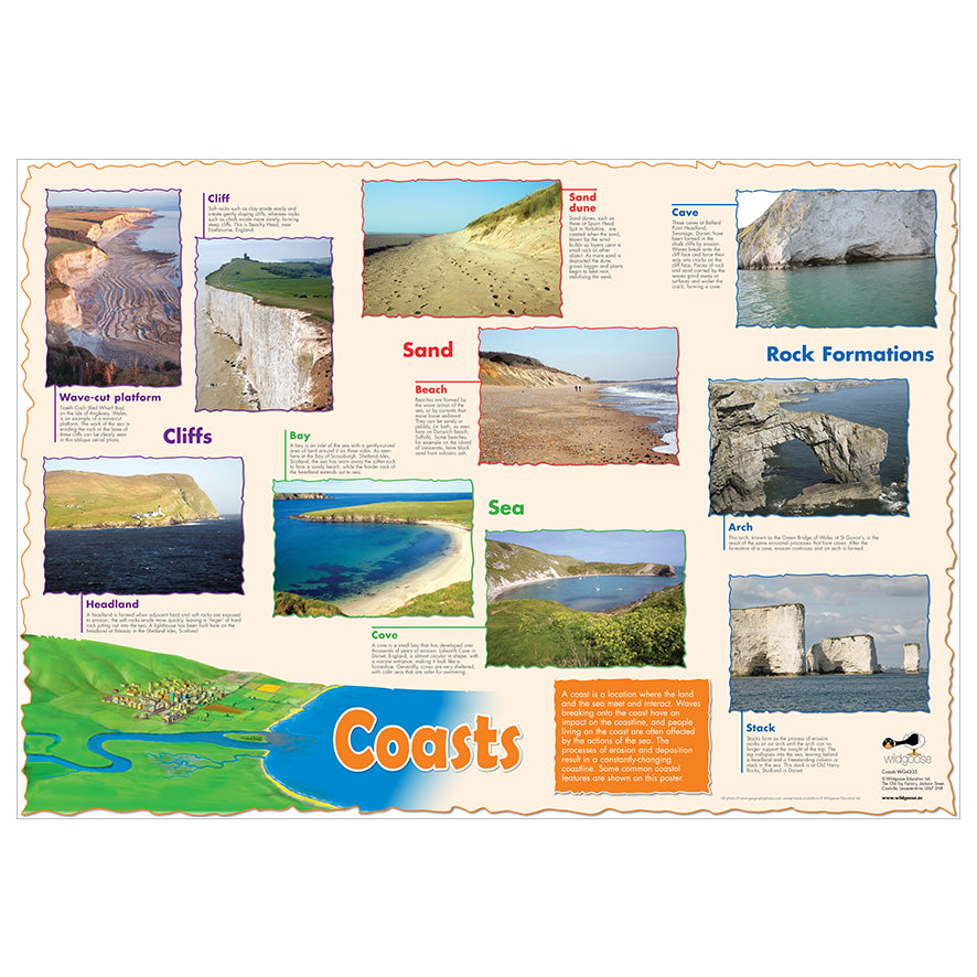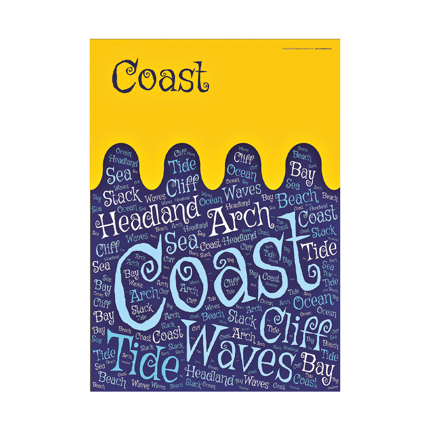 Coasts Poster (100cm x 70cm) – A large, vibrant poster that illustrates the stunning features of coastlines. This poster showcases various coastal features such as beaches, cliffs, dunes and bays. It's a fantastic visual tool for introducing coastal geography to students. It’s perfect for classroom walls, offering a constant reference to key concepts throughout the course of your studies.