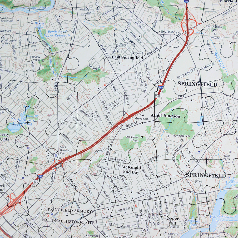 The perfect gift to commemorate a college, sports field or family home, you can select any address to form the center of this puzzle. Using US Geological Survey (USGS) mapping, digitally stitched together seamlessly, the map covers an area of 7 miles (east-to-west) by 5 miles (north-to-south) and is made of 100 pieces.
