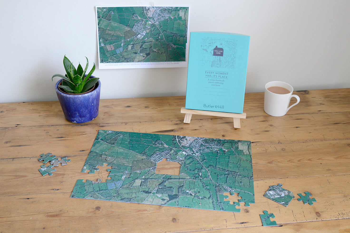 A love of puzzles and pride in the home are combined in this stunning jigsaw which will challenge jigsaw enthusiasts from the whole family as they race to recognize local landmarks and features and finally create a picture of the neighborhood.