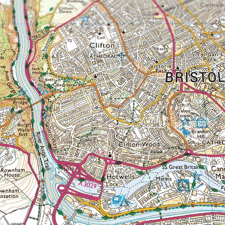 • Ordnance Survey’s flagship map base, the mapping base is bursting with colourful information showing landmarks and areas of interest. The map detail features everything from footpaths to motorways and from farms to stately homes