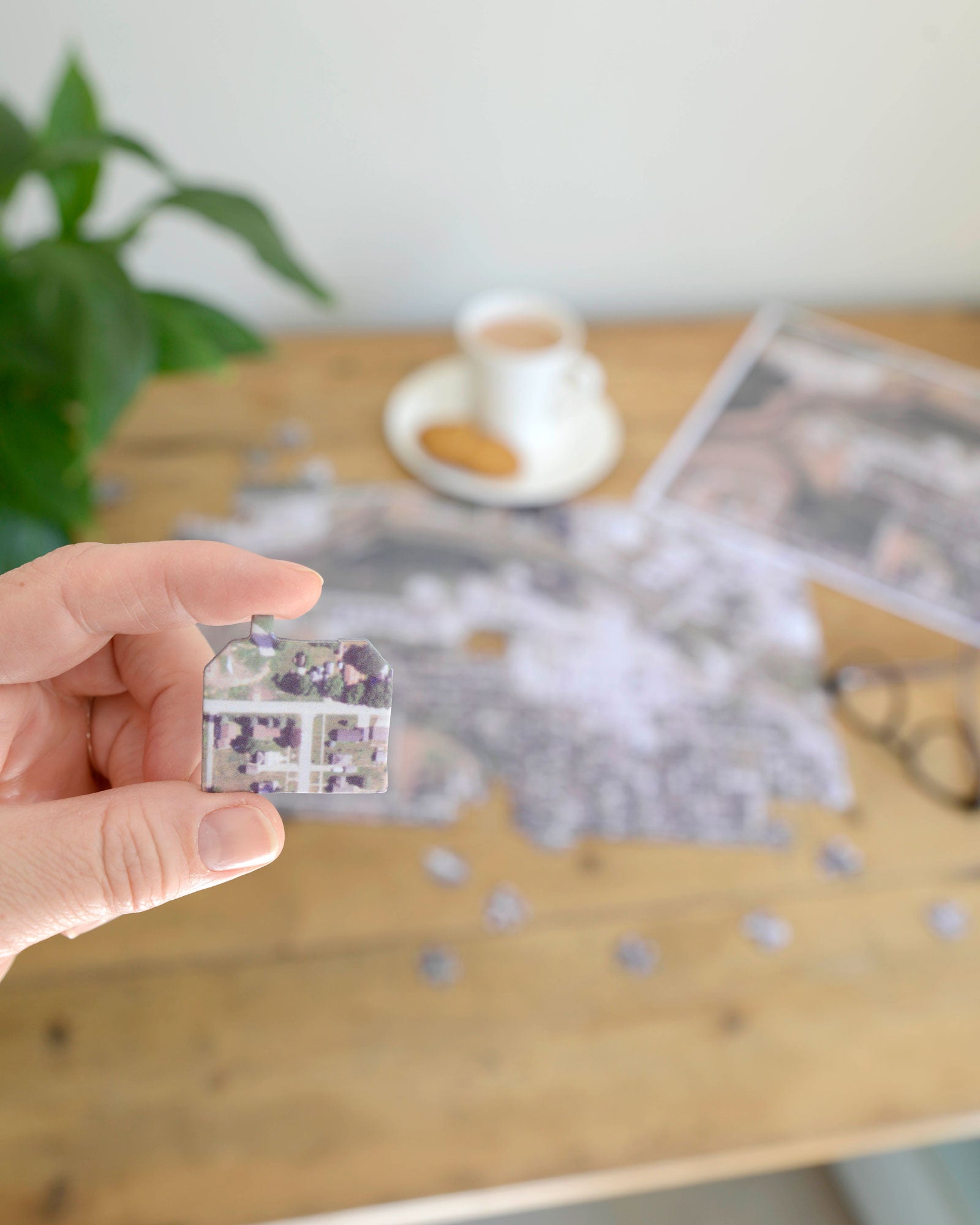 A real-life puzzle with‚ an aerial photograph of your home‚ as the center piece!