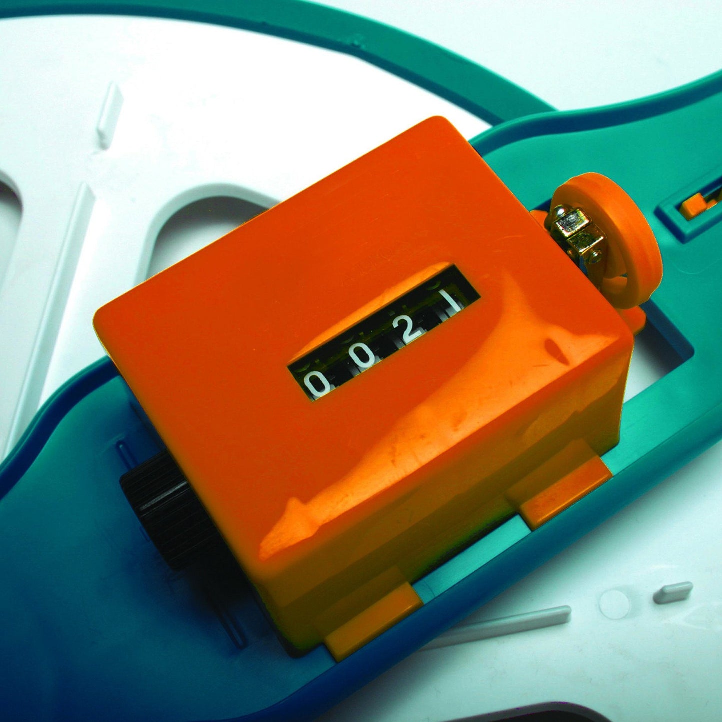 Mechanical counter designed to fit in place of the standard clicker on the Trundle Wheel. The counter will accurately count to 9999 metres, or it can be set to register every 100mm to a maximum of 999.9 metres.