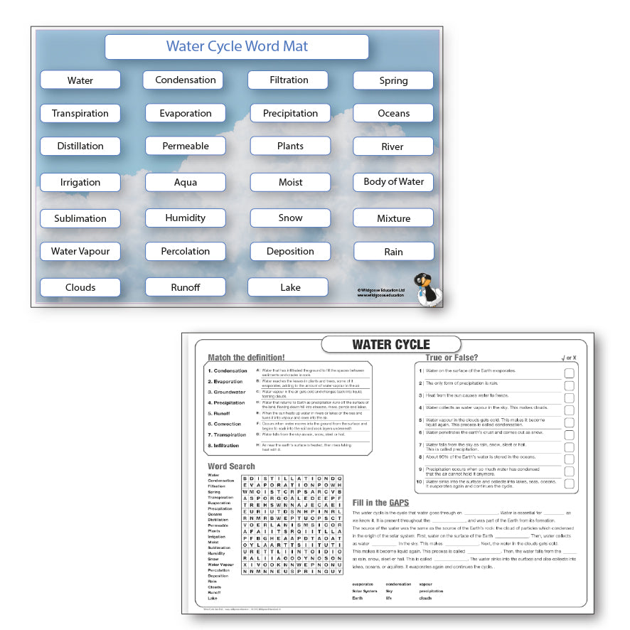 1 x A3 Water Cycle Wordmat – A handy, quick-reference mat filled with all the essential water cycle terms. Ideal for keeping key concepts at your fingertips during lessons or while completing activities.
