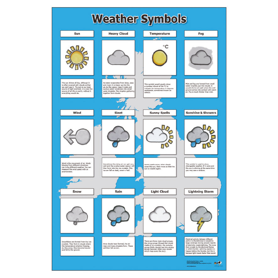 1 x A1 Weather Symbols Chart – A big, bold guide to weather symbols, perfect for mastering weather language!