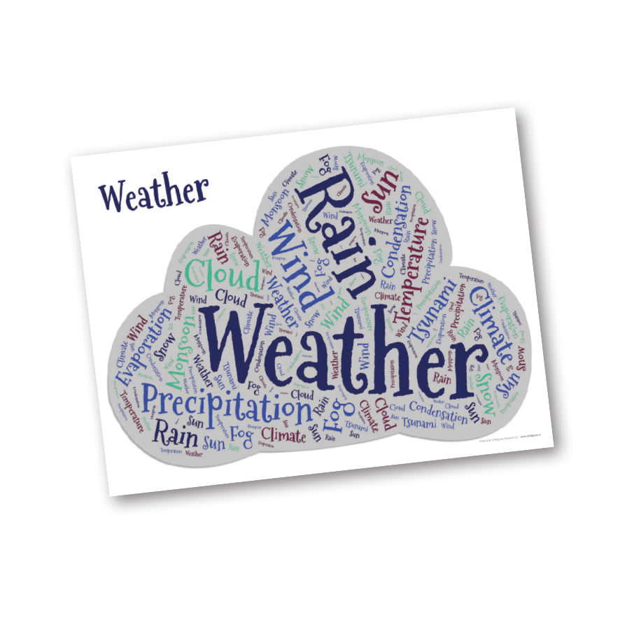 1 x A2 Weather Word Cloud Poster – Explore key weather terms in a fun, cloud-shaped design that’ll help boost vocabulary while looking awesome on the wall.
