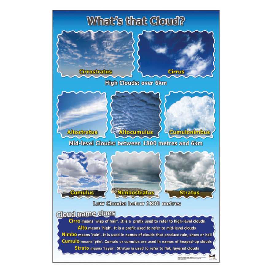 1 x A1 What's That Cloud? Poster – Become a cloud expert with this poster that helps students identify different types of clouds.