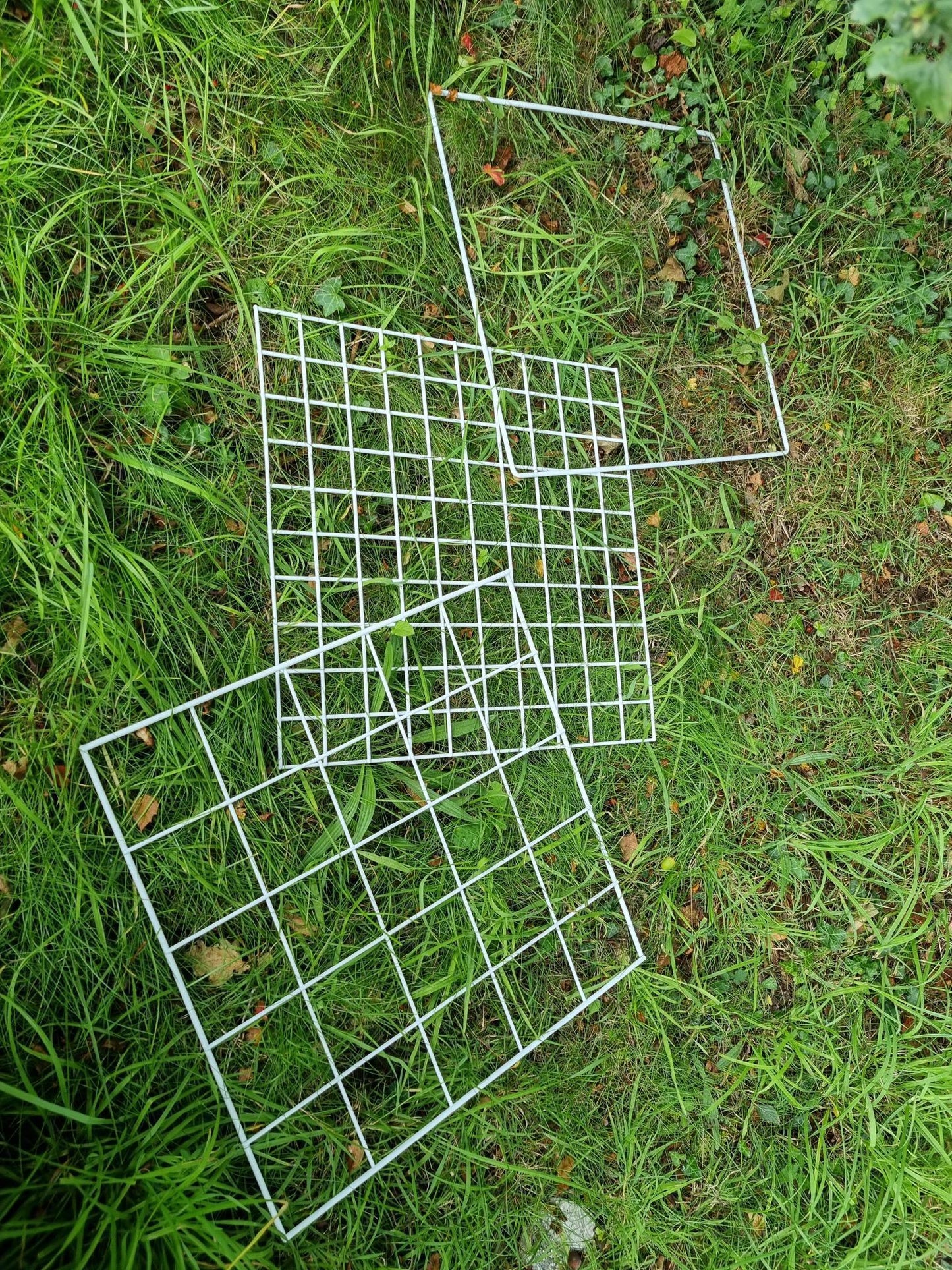 These rigid half-metre white quadrats are made of plastic coated wire and are designed to last.