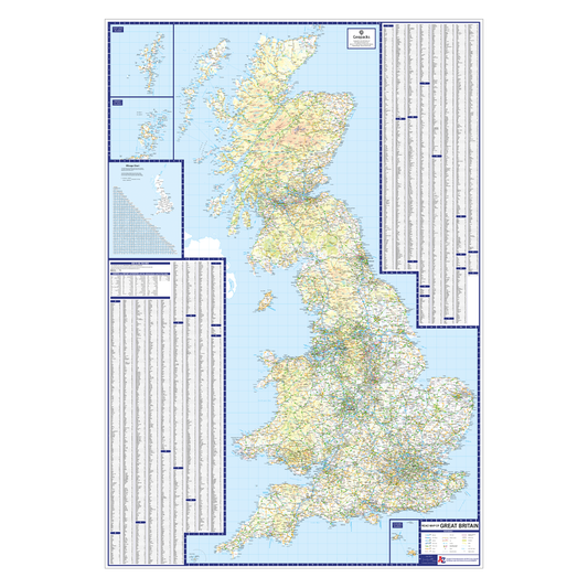 British Isles Motoring Map - A to Z Road Wall Map of UK