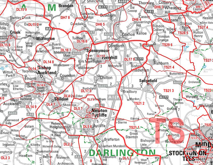 Durham, Tyne and Tees (Newcastle Upon Tyne) Postcode Wall Map - Sector Map 22