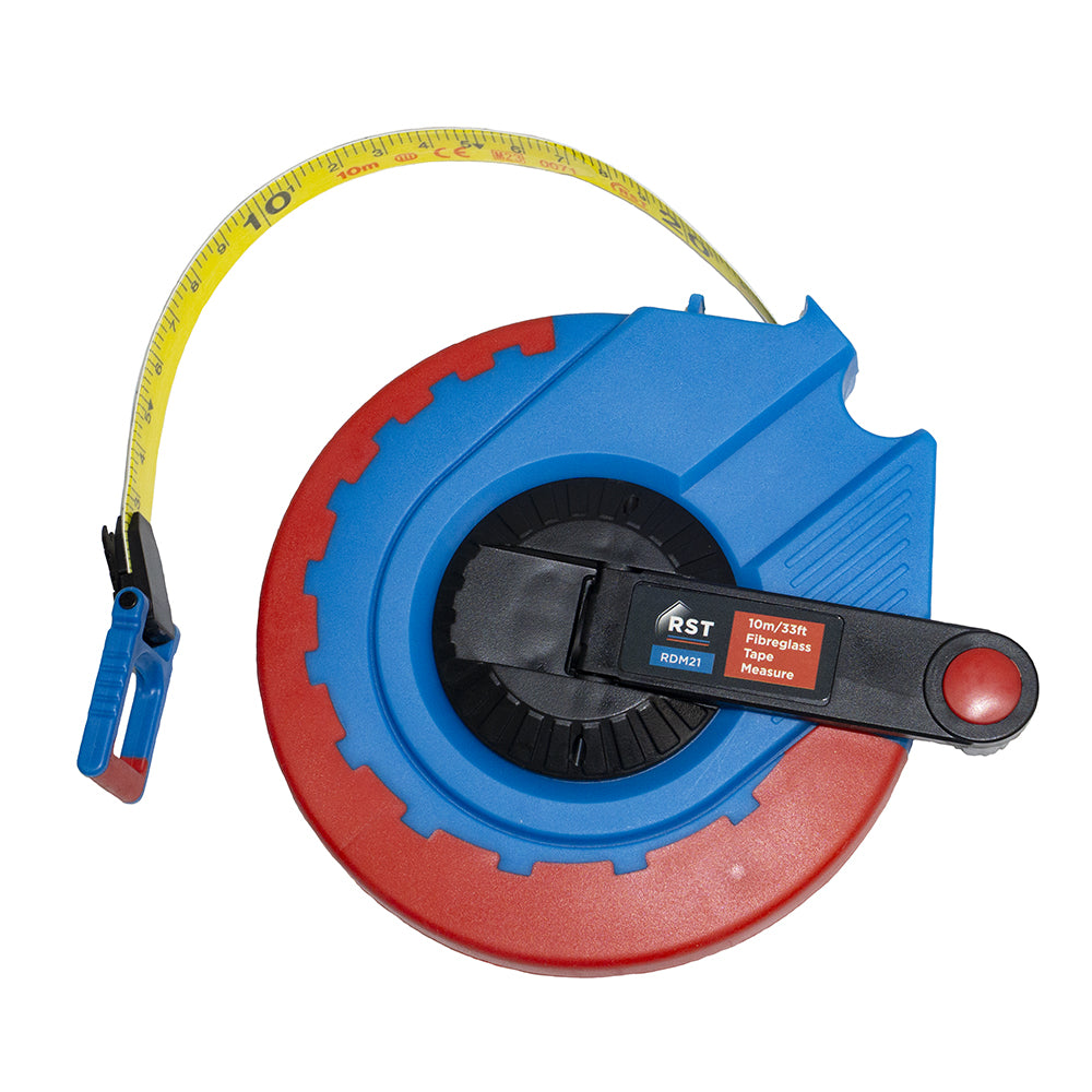 Features a folding rewind crank which sits in the middle of the tape when not being used to avoid being damaged and a metal claw at the end of the tape to allow you to grip into the ground or material for easy and accurate measuring