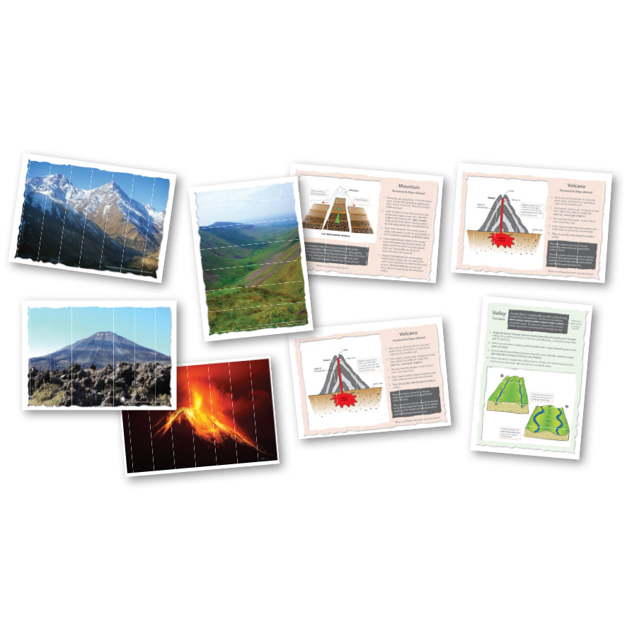 4 x A4 Geographical Features Formation Photocards – These photocards cover the formation of various geographical features, including mountains, valleys, and plateaus. Students will learn how different landforms come into being and how they influence the surrounding environment.