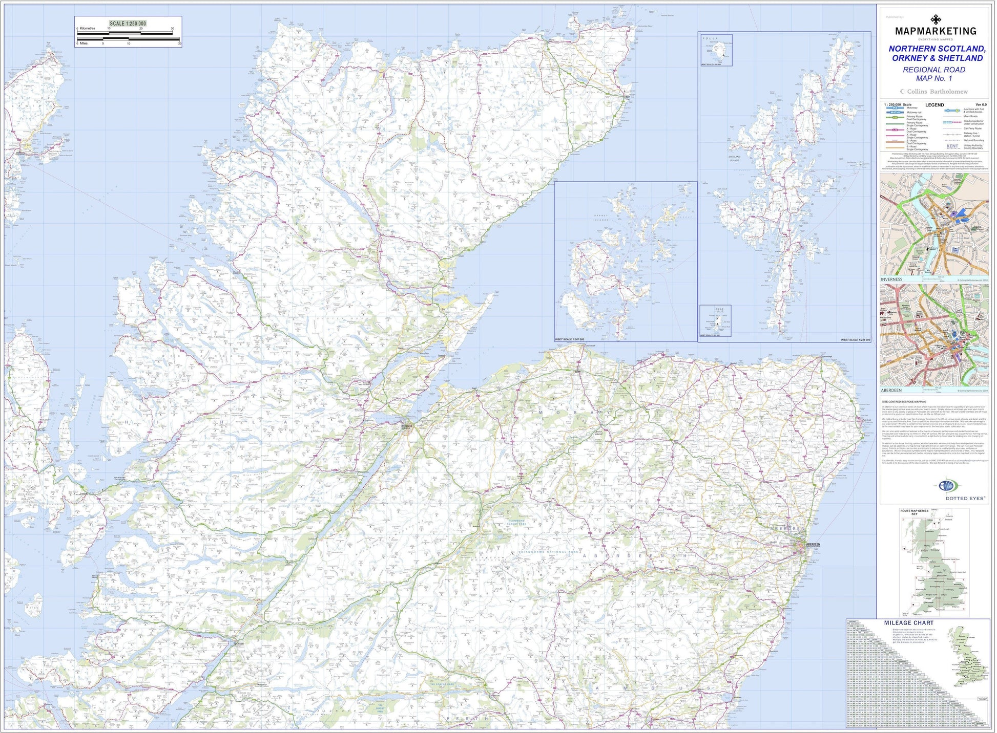 Northern Scotland, Orkney and Shetland Regional Road Map - Wall Map 1