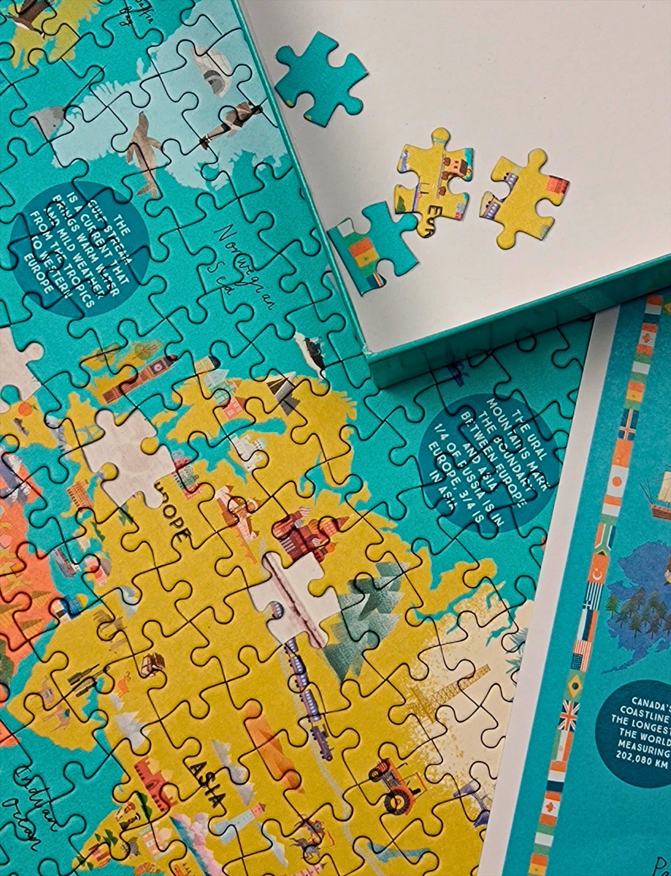 Find out fascinating facts like where our weather warnings come from, discover the world's most densely populated places, learn about Canada’s continuous coastlines and where the lungs of the planet live. This exciting map puzzle will take you on an epic adventure around the spectacular sphere that we call ‘home.’