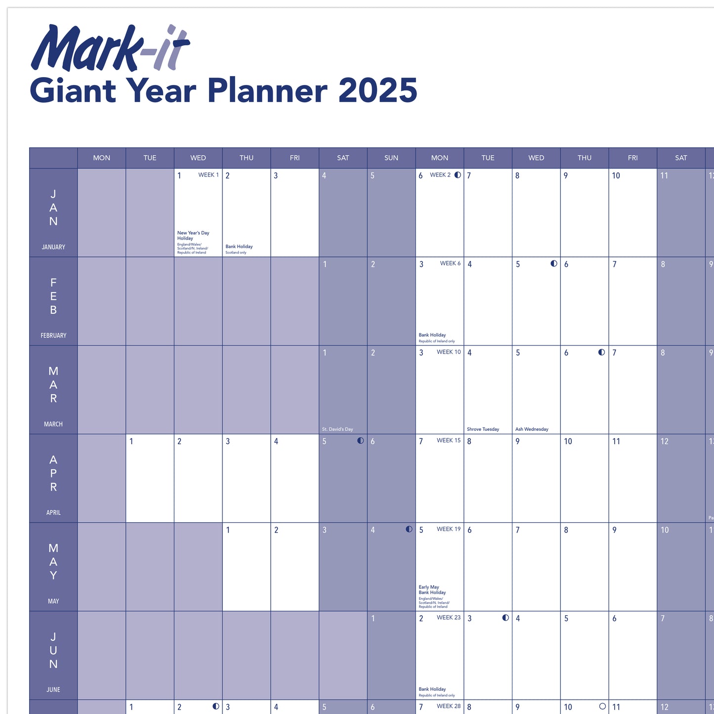 2025 Giant Year Planner: plan key dates and events with this write-on/wipe-off wall planner.