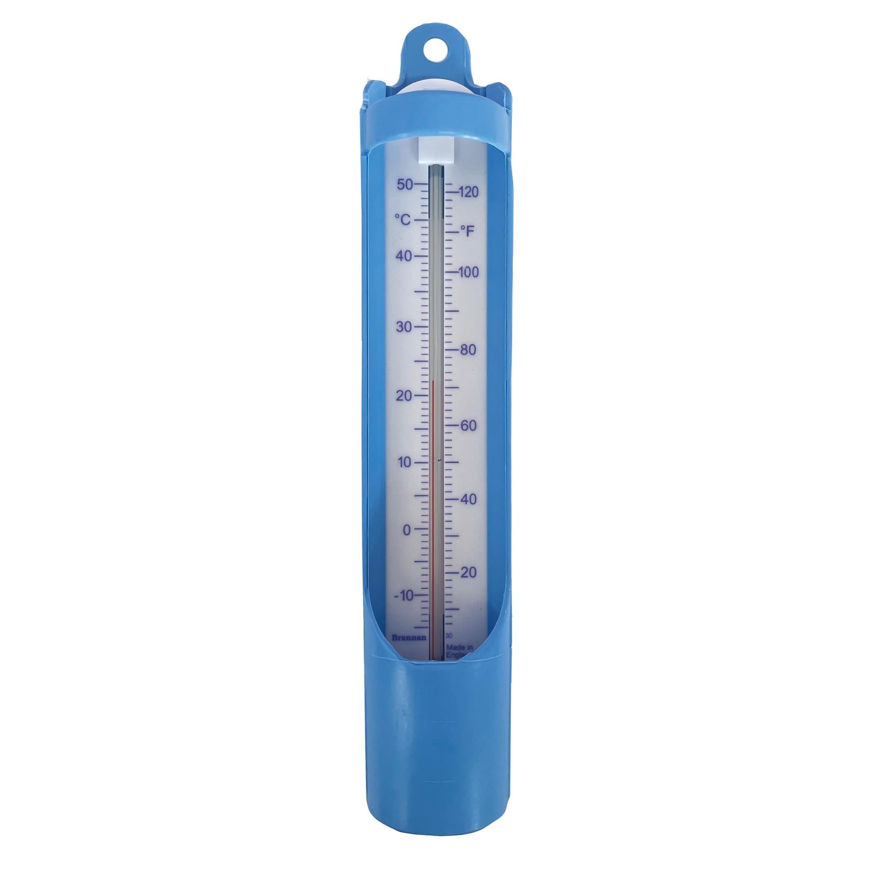 Indulge in the convenience of this deluxe thermometer. With a simple sample, you can monitor the temperature of your pool or pond. Constructed with dual scaling, it features a smooth blue plastic molding for a sleek and sophisticated look.
