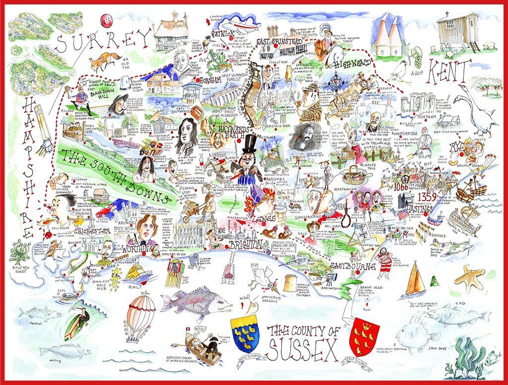 A very funny jigsaw puzzle that has a lot of amusing depictions of events and places in Sussex, including omnivorous seagulls, Bognor Regis 'the sunniest place in GB', Ashdown forest which inspired A.A Milne's 100-acre forest in the Winnie the Pooh books, and Beachy Head at Eastbourne which has the tallest chalk cliff in Britain! You will certainly learn something new from this fantastic puzzle and even if you do know it all, it will certainly amuse you!